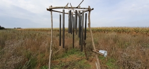 Das Resultat war, die Grundsteinlegung am 10. Juni 2021 in einer Form eines Dreiecks, mit drei Stehern aus langen Holzpfeilern. Diese Dreiseitigkeit dafür, dass der Wind, der aus den verschiedenen Himmelsrichtungen kommt, die Möglichkeit hat verschiedene Klanggeber an unterschiedlichen Position zu spielen. So wird das Windinstrument je nach Windrichtung unterschiedlich klingen.